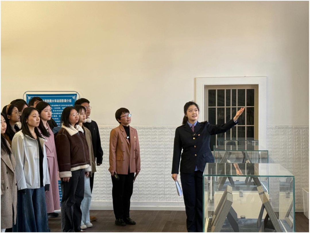 组织开展“行走的思政课——枕木上的周水子”主题实践活动。活动邀请中国近现代史纲要教研室主任王金凤,带领青年学生走进具有百年历史的大连周水子火车站,以铁路为载体,在实地研学中感悟中华民族血泪史、矢志不渝的奋斗精神,以及新时代伟大成就。