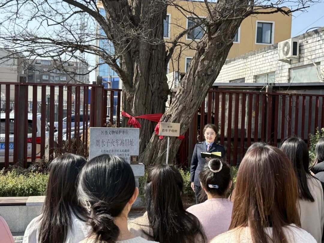 研学中,周水子站党支部书记李冰、职工战映辰、刘雨萌先后结合周水子站门前百年老树、展馆内珍贵展板与史料,为同学们讲述了19世纪末至20世纪上半叶帝国主义列强在中国东北的角力,讲述了红色基因为大连带来的抗争与奋斗。
