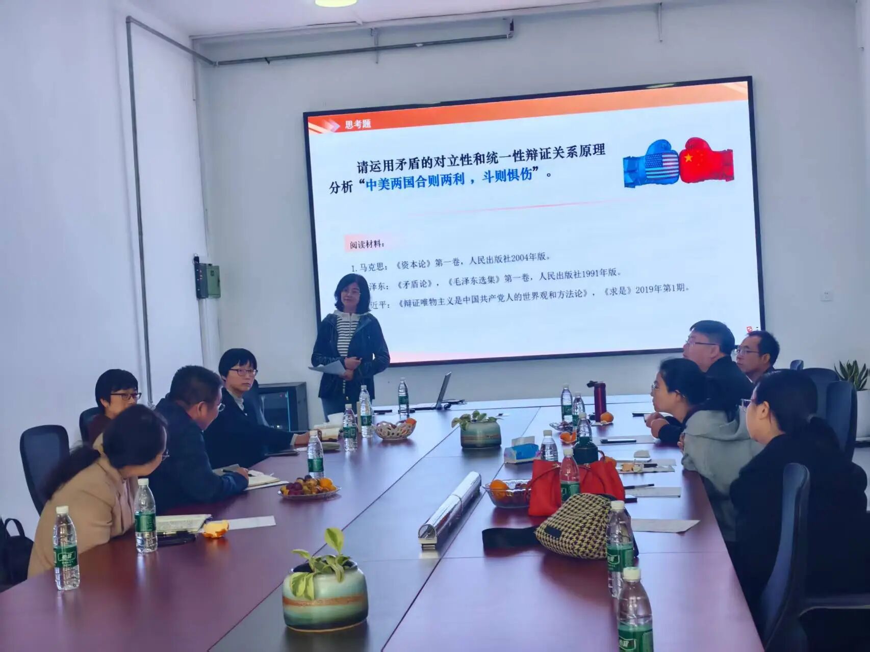 教师徐超以“六届六中全会何以‘决定中国之命运’”、高明以 “如何用‘矛盾’破解矛盾” 为题,分别参与 “中国近现代史纲要” 课程组、“马克思主义基本原理”课程组角逐。两位教师凭借扎实的理论功底、精湛的教学技能和稳定的现场发挥,呈现了既富专业性又具育人实效的优质思政课教学展示,收获评委一致好评。