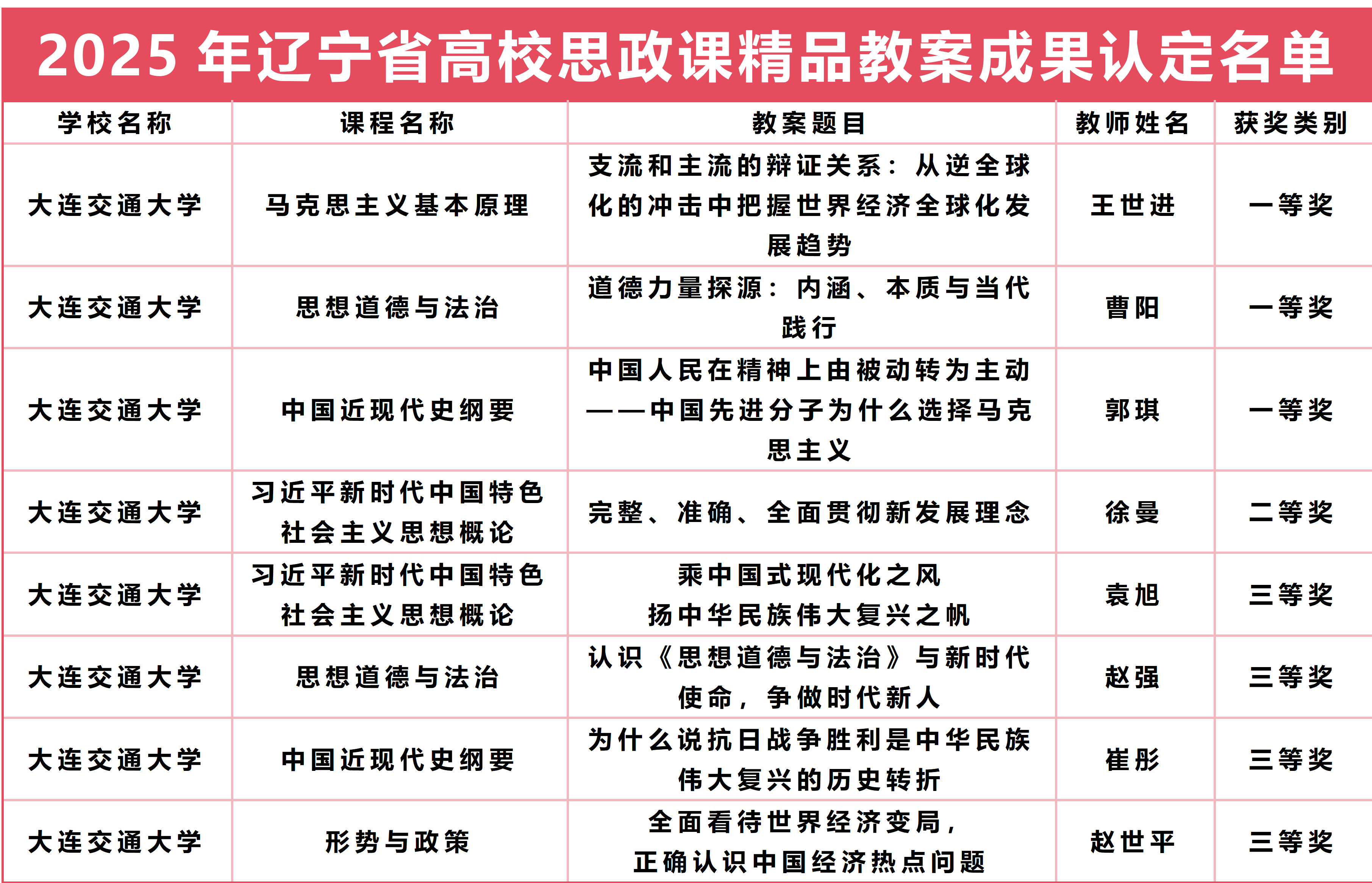 根据《关于公布2025年辽宁省高校思想政治理论课精品教案成果认定的通知》(辽教通【2025】490号) ,在2025年高校思政课精品教案评选中,91暗网